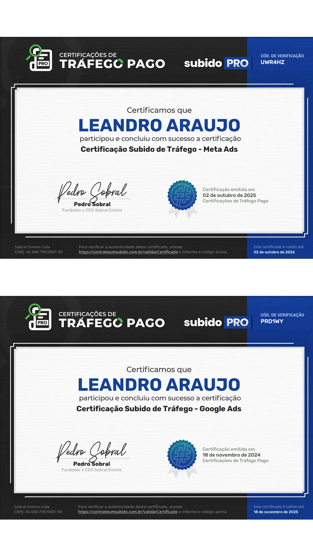 Sou membro da Comunidade Sobral de Tráfego Pago, a maior e comunidade de gestores do Brasil e faço parte do Subido PRO, a maior mentoria de Tráfego Pago da América Latina. Mais do que subir campanhas, eu te ajudo a construir uma máquina previsível de crescimento.
